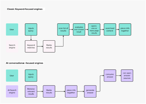 The user’s ultimate goal in both classic and AI-powered search remains identical: finding an answer within a text. The key differentiator is the AI’s capacity to perform the initial aggregation and synthesis, thereby reducing the user’s cognitive load. This approach aligns closely with the intuitive Q&A pattern inherent in human conversation, fulfilling a crucial usability heuristic: "Match between system and the real world" [4]. By mirroring natural dialogue, these tools feel more intuitive and accessible.